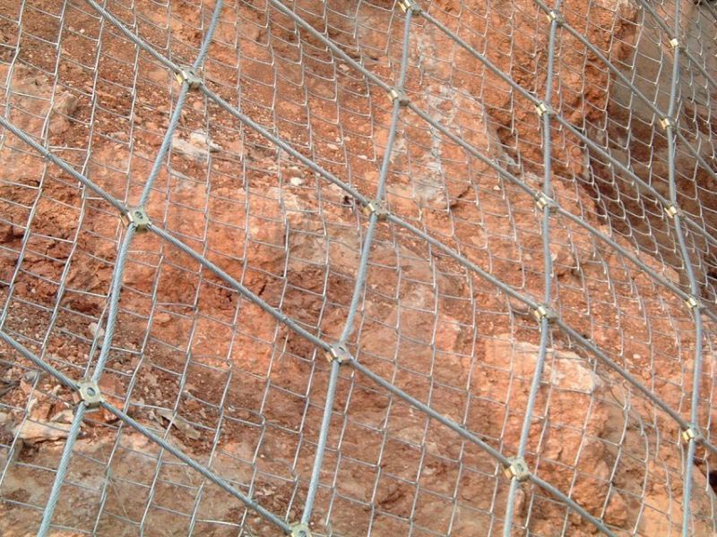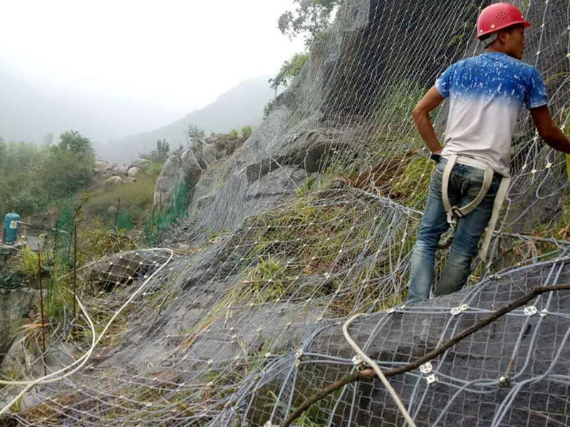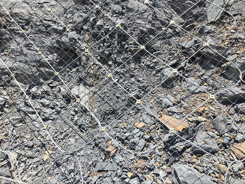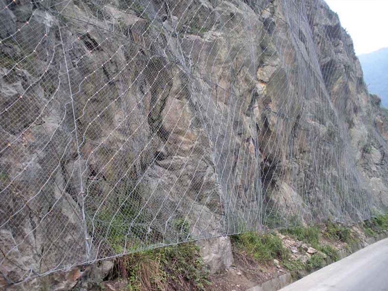 主動防護網是目前最有效的邊坡防護產品,主動防護網是將小片鋼絲繩網縫合在一起形成一張大網,將整個山體罩住,防止落石滾落。即使非常陡峭的邊坡也同樣可以采用主動防護網的方式進行防護,陡峭的山坡落石一旦風化,就極有可能發生塌方、滾落,傷及到路邊的行人與車輛。采用主動防護網進行防護,巖石風化、滾落也只能在主動防護網的控制范圍內運動。